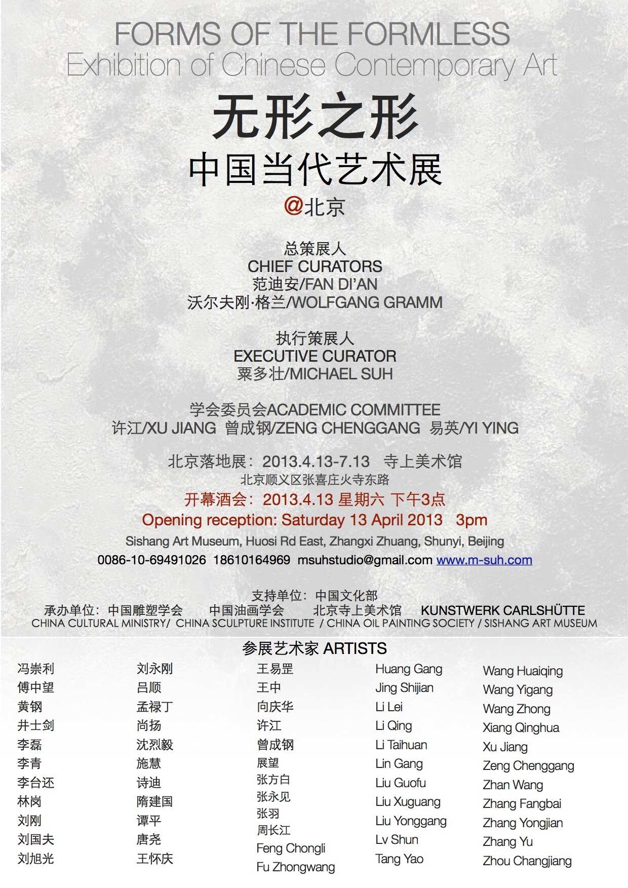 4月13日,2012年中德文化年“近观中国”之“无形之形——中国当代艺术展”中国落地展在寺上美术馆开幕。《无形之形》展是中德建交40周年“2012中德文化年”的交流活动之一,由中国油画学会、中国雕塑学会与北京寺上美术馆和卡尔舒特艺术中心等机构共同组织举办,囊括了目前中国当代艺术较为活跃的艺术家,包括绘画、雕塑和新媒体等多种艺术形态。